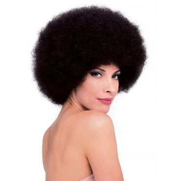 • Classic Afro wig, for men or women, available in blonde, brown, or black.