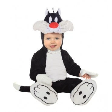 - Includes black and white romper with attached tail, paw print booties, hand-free mittens, and headpiece.